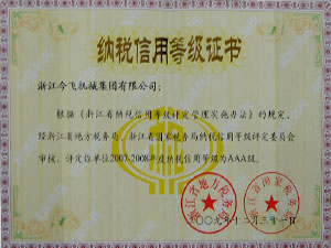 2007-2008年度納稅信用等級(jí)AAA級(jí)證書