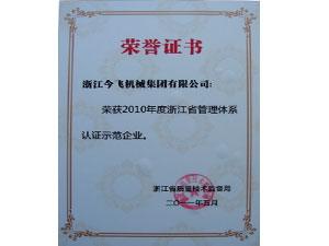 2010年度浙江省管理體系認(rèn)證示范企業(yè)