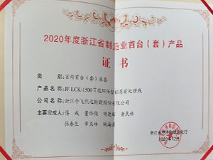 2020年度浙江省制造業(yè)首臺(tái)(套)產(chǎn)品證書