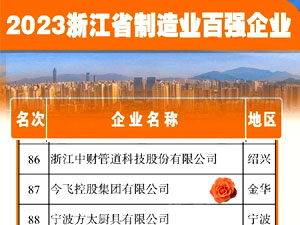 今飛控股-2022浙江省制造業(yè)百強(qiáng)企業(yè)第88位