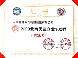 云南富源今飛輪轂-2023云南省民營企業(yè)100強(qiáng)(第38名)