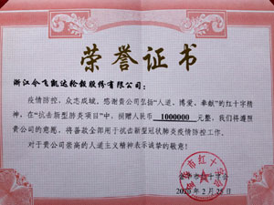 抗擊新型肺炎捐贈百萬元證書