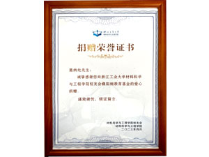 葛炳灶先生向浙江工業(yè)大學捐贈榮譽證書