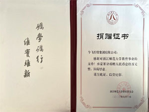 今飛控股向浙江師范大學捐贈證書