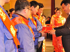 公司董事長兼總裁葛炳灶為先進(jìn)員工頒獎(jiǎng)